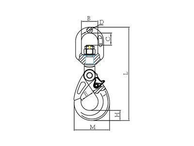 | Código de artículo | Peso (kg) | Límite de carga de funcionamiento (t) | Carga de ruptura (t) | B±1 (mm) | C±1 (mm) | D±0.5 (mm) | E±1 (mm) | H±1 (mm) | M±2 (mm) | L±3 (mm) |